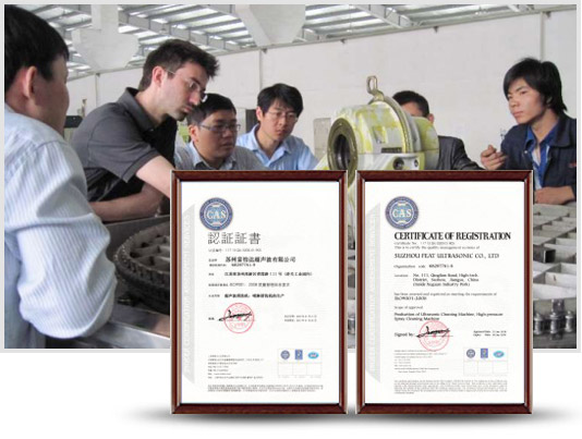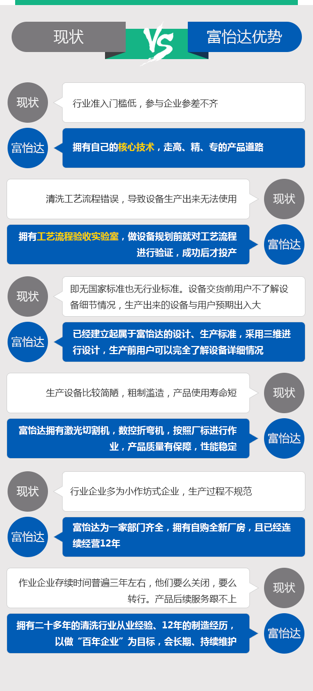 清洗行業均為行業專用設備,目前即無國家標準,也沒有形成行業標準,所以設備是各取所長,富一達的自動超聲波清洗機,通過式超聲波噴淋清洗機、往復式旋轉噴淋清洗機,渦旋式清洗機均按富怡達廠標標準進行設計、制作。