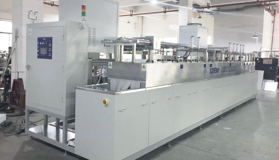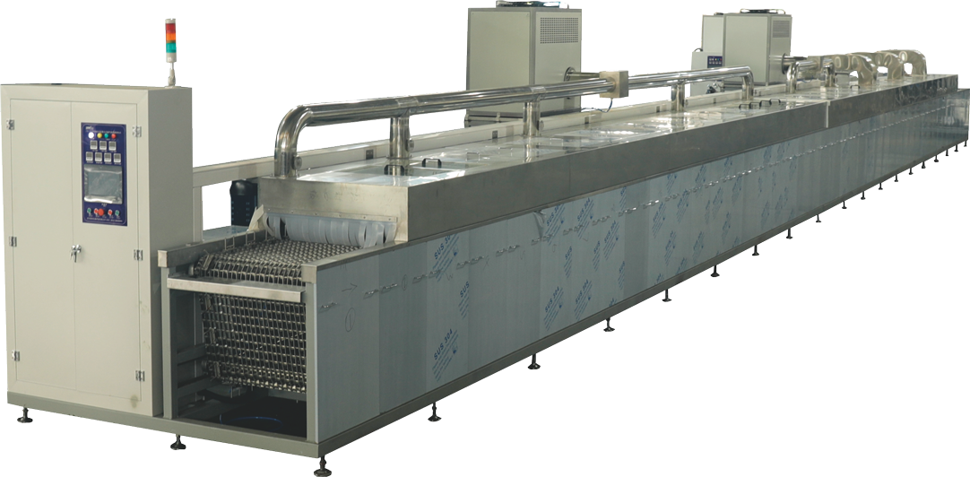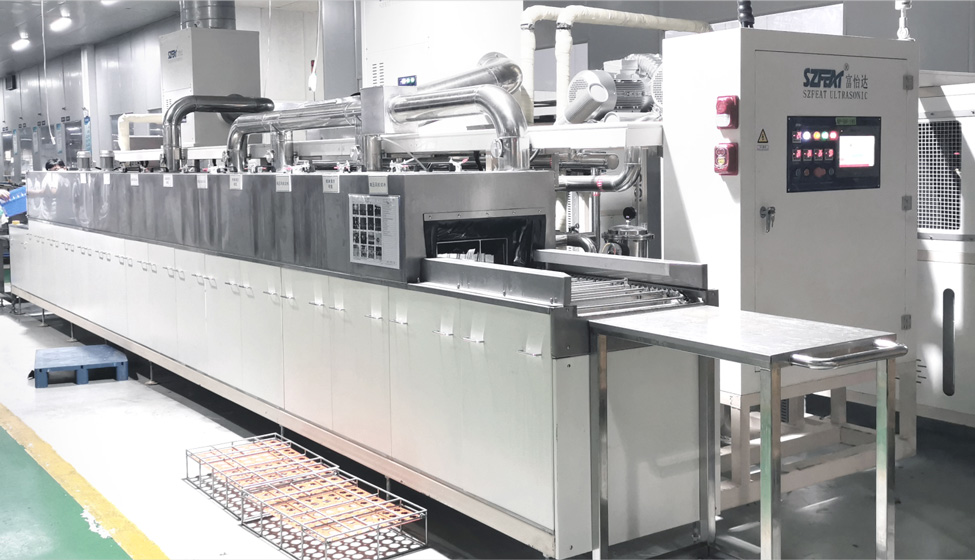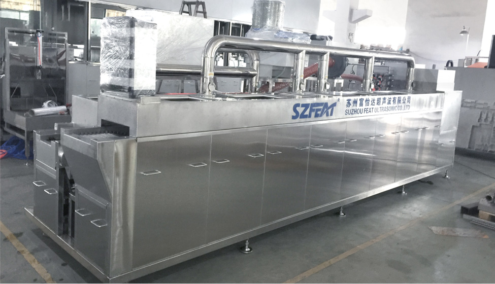 The “Szfeat” Continuous automatic cleaning machine is a combination of spray cleaning, ultrasonic cleaning and multi-drying. It is equipped with rust prevention, leather diaphragm, passivation per different products. Process chamber is equipped with flow-off, cycle filter, oil and water separator, etc. According to different working procedure, use different transmission methods of chain, mesh belt, powered roller, suspend chain, air cylinder impetus. Transmission speed can be adjusted and stepped or continuous transmission is available. It is wildly used on metals mechanics, battery, electronic parts, time piece parts, metals stamping parts, automobile and motorcycle parts, compressor parts, jewelry and accessories, glass frame, electronic stamping and bearing, etc. industries. It is an ideal cleaning equipment.