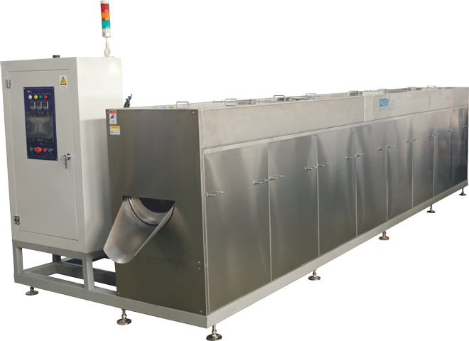 As a new type precision cleaning equipment, “Szfeat” brand automatic vortexes ultrasonic sparge cleaning machine combines multiple functions of spray cleaning, ultrasonic cleaning and various drying methods, equipped with special spiral device to push materials forward. It is used for cleaning of seriously oil stained products such as automobile fasteners, oil tubing gas pipe joints, sparking plug body, bearings, caps, battery casings, nuts, etc., and has been registered as a patent of our company with the patent number ZL2017113731649.