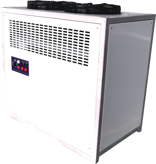 As an environment-friendly product, FEAT brand condensing water mist (water vapor )separating and recycling equipment is intended to condense and recycle the water mist produced by ultrasonic cleaning equipment and spray cleaning equipment of various water base type, which mainly consists of refrigeration compressor, air-cooled condenser, special evaporator, centrifugal suction fan, exhaust blower, safety protection system, and electrical control system featuring the merits of energy saving, environmental protection and safety. Its working principle is as follows: connect the water vapor exhaling outlet of cleaning equipment to the inhale inlet of condensing water mist (water vapor )separating and recycling equipment. The high-speed centrifugal suction fan separates the water vapor and then sends them to condensation chamber fitted with evaporator for condensing into dew. Driven by their own weight and centrifugal force, the dew flows downward along the interior wall of the condensation chamber into water-gathering tray where about 85% water has been separated from vapor. The remaining vapor containing water in small quantity will be drawn via air suction fan into air cooled condenser which has temperature (normally around 35 degrees centigrade)taken from compressor during the process of heat dissipation for the latter. The fin-shaped condenser will filter and dry the water vapor once again in the process of fast air suction before discharging. The water drops filtered by condenser will be collected into water-gathering tray and then sent into gathering barrel through small holes of tray or returned to cleaning equipment for reuse.