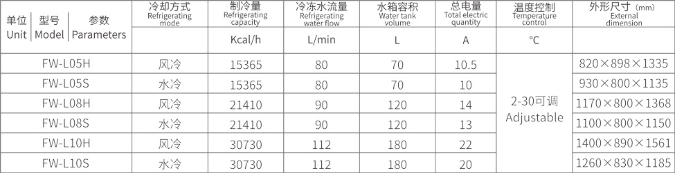 SZFEAT牌工業冷水機由資深冷氣專業設計師精心設計,采用進口壓縮機、不銹鋼水泵、不銹鋼水槽、高效冷凝器并配套集成控制系統組裝的恒溫系統;它性能穩定,外形美觀,能耗小,水溫控制范圍為:2-30℃,分水冷式和風冷式兩種。富怡達牌工業冷水機除配置工業超聲波清洗機使用,有效防止清洗液的揮發損失,以達到降低成本的的作用外,還廣泛應用于電鍍液、真空爐、注塑機、油壓機、鍍膜機、大型液壓設備的控溫使用,還可用作化工、醫療、食品、制藥等行業作冷卻使用。